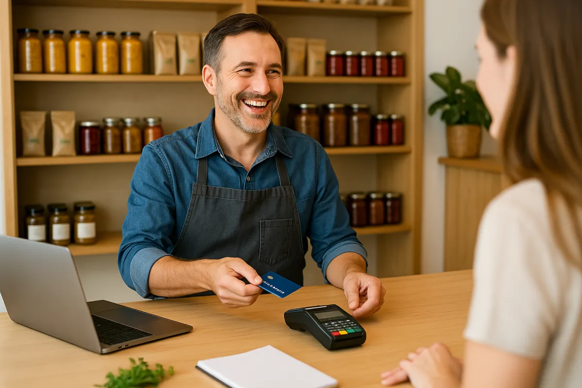 Small business owner receiving a review notification on their phone